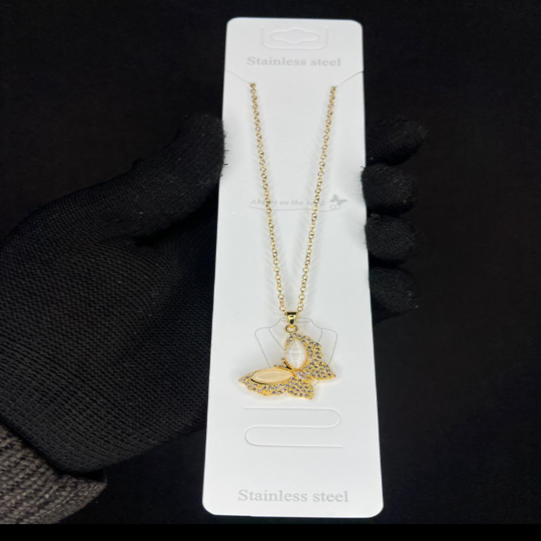 Soft, glowy and a little sparkly—this butterfly necklace is made to elevate simple outfits without looking overdone. The opal-look wings catch the light beautifully, and the adjustable chain makes it easy to wear solo or layer with your daily chains.
