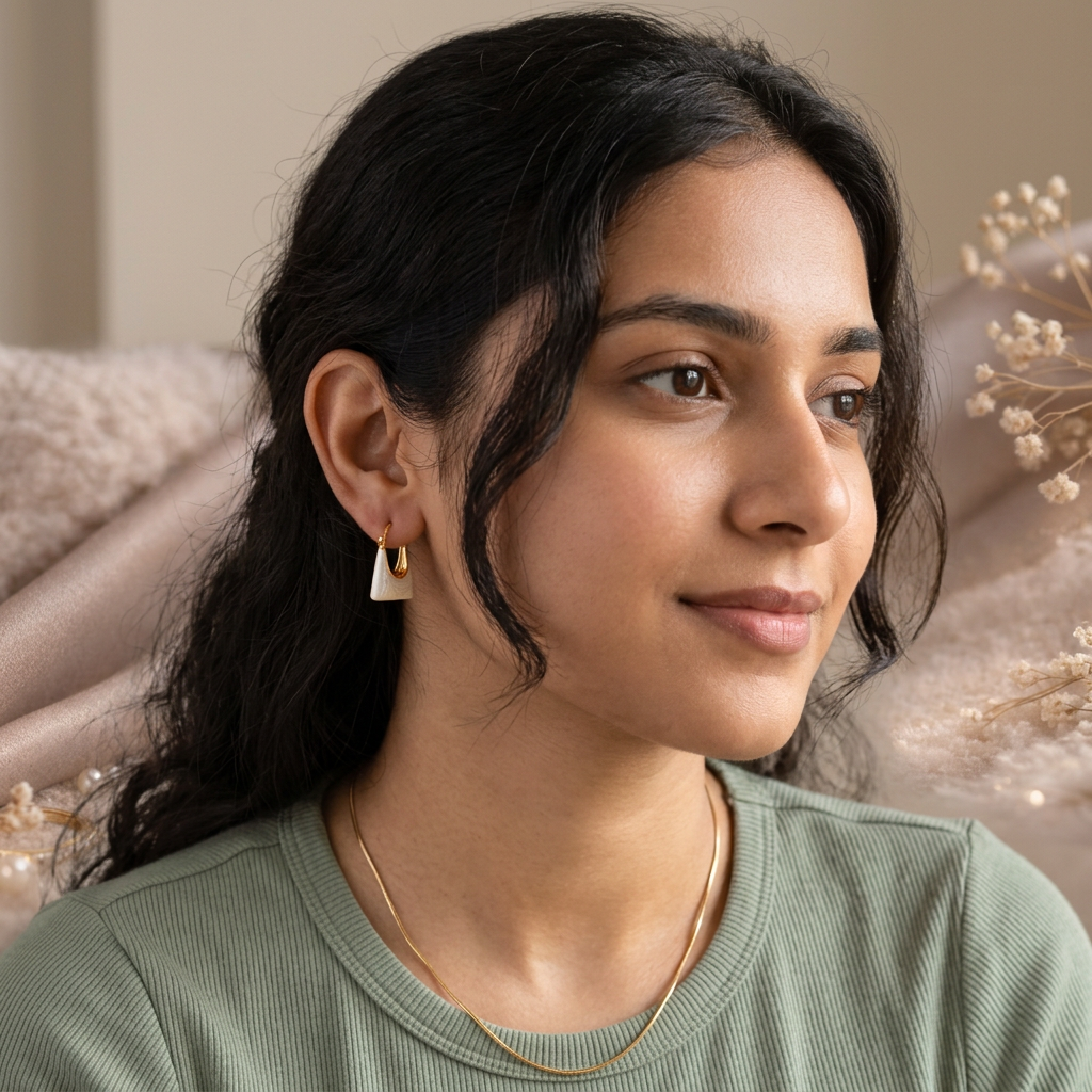 "Quiet Luxury" in an earring. 💅 The Parisian Chic Hoops are for the girl who loves neutrals, blazers, and looking expensive on a budget. The unique trapezoid shape mimics a luxury handbag, while the creamy marbled enamel adds a rich texture. They are understated, sophisticated, and perfect for the office or a Sunday brunch